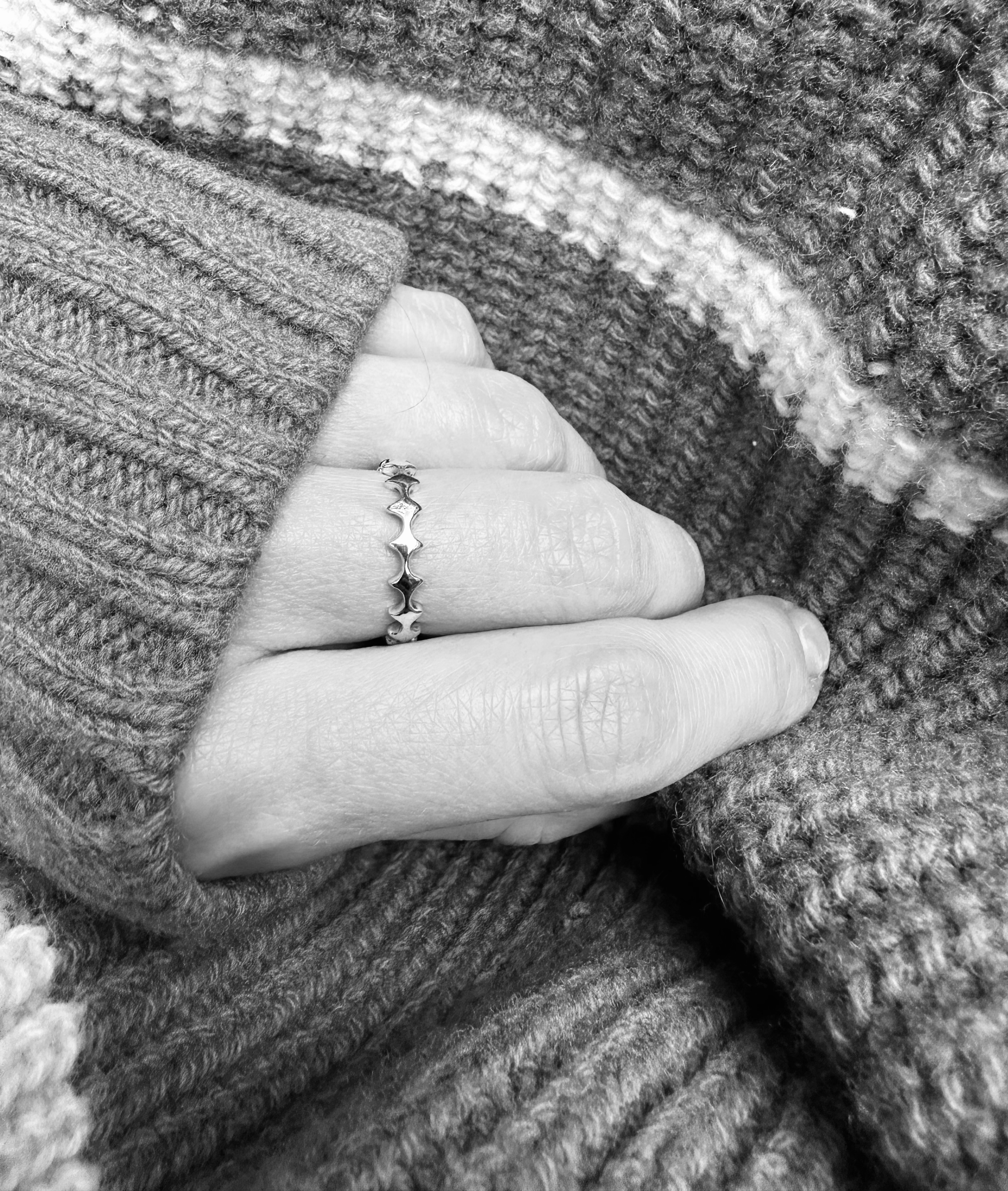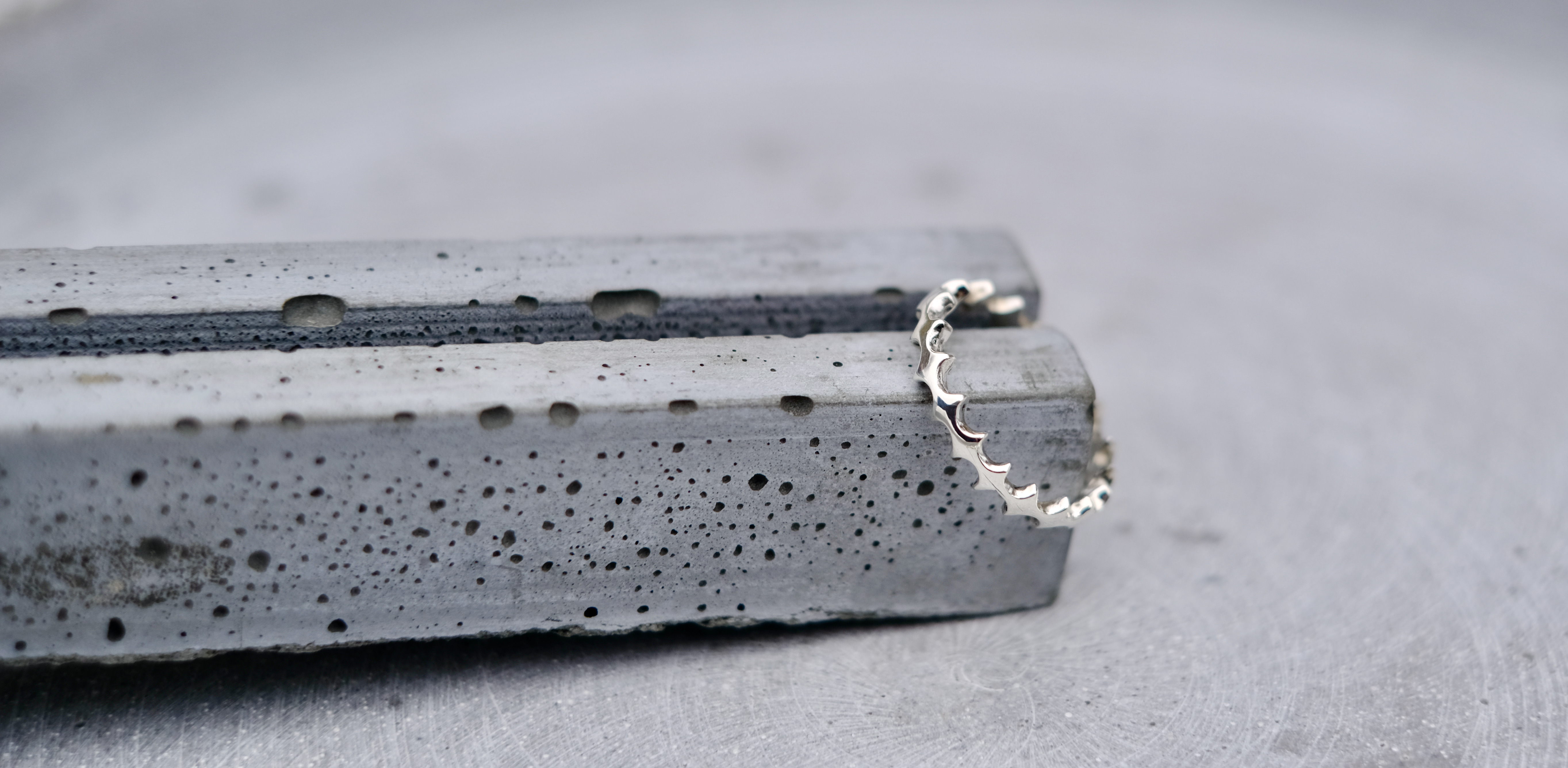 Minimalistinis tarsi karūnos formos žiedas, gimęs iš meilės smulkioms bet reikšmingoms detalėms.