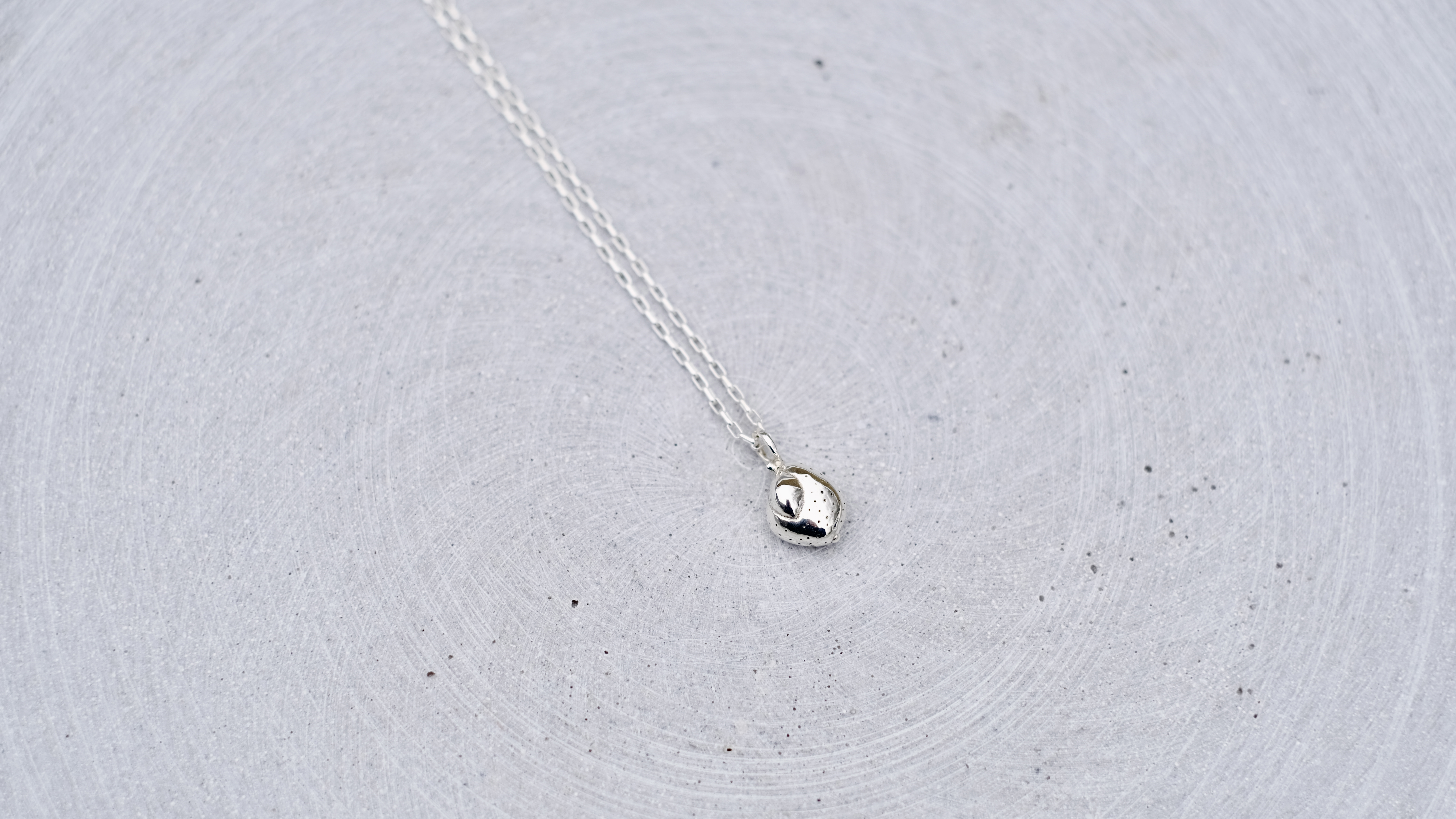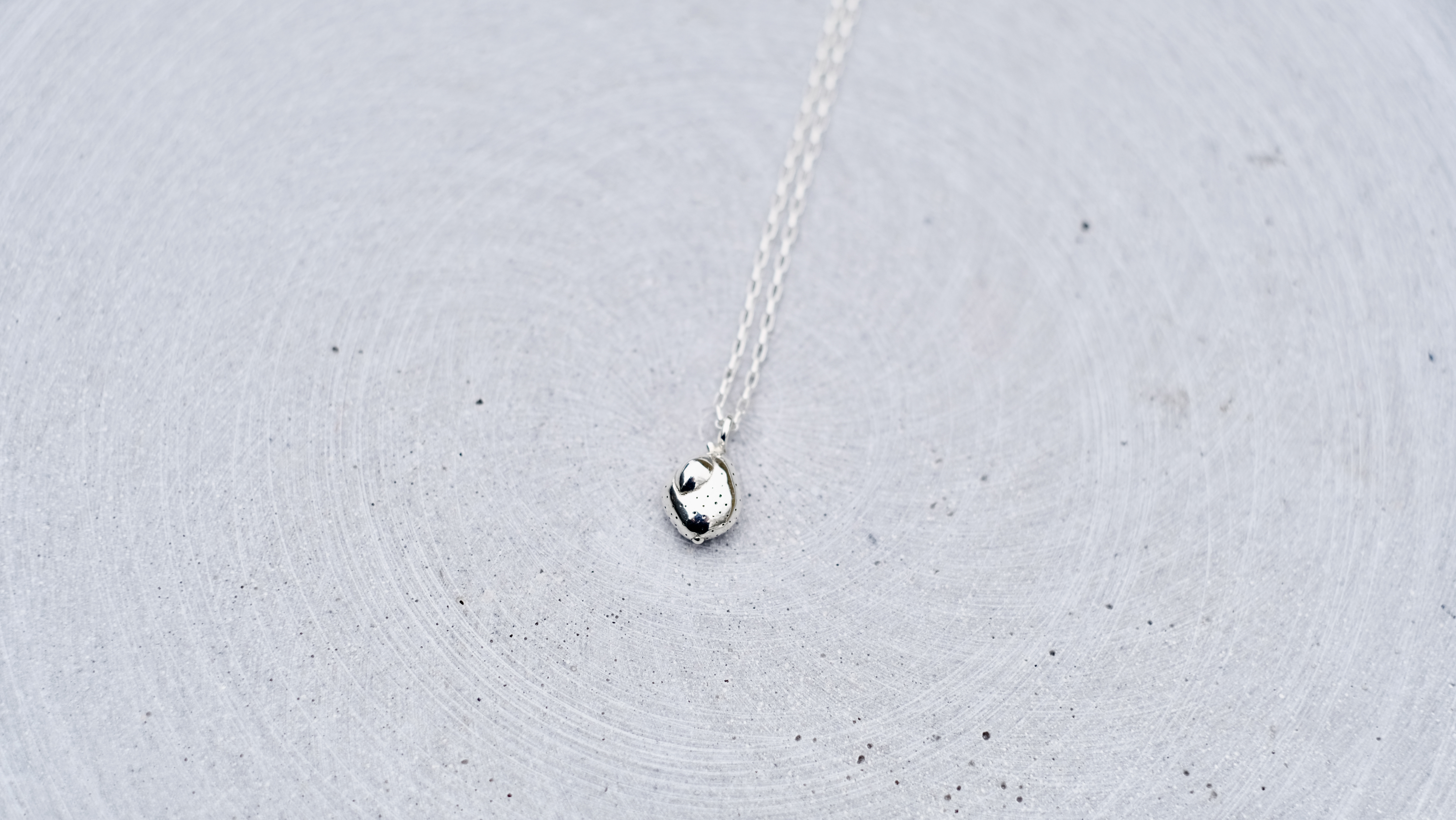 Rankų darbo sidabrinis citrinos pakabukas Įkvėptas saulėtų citrusų formų - minimalistinis, bet išraiškingas, jis gražiai krinta ant odos ir subtiliai atspindi šviesą.